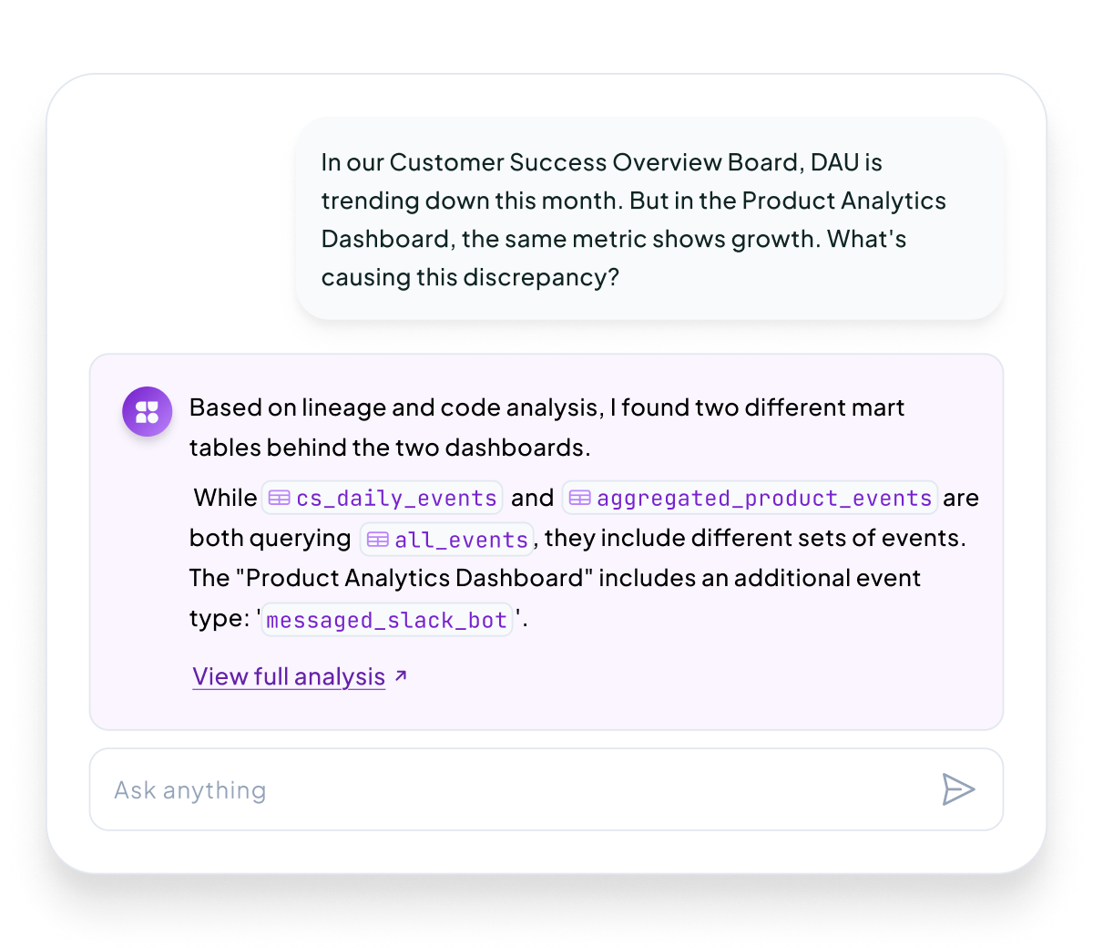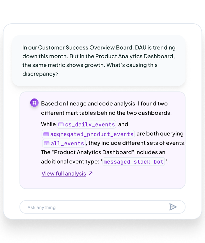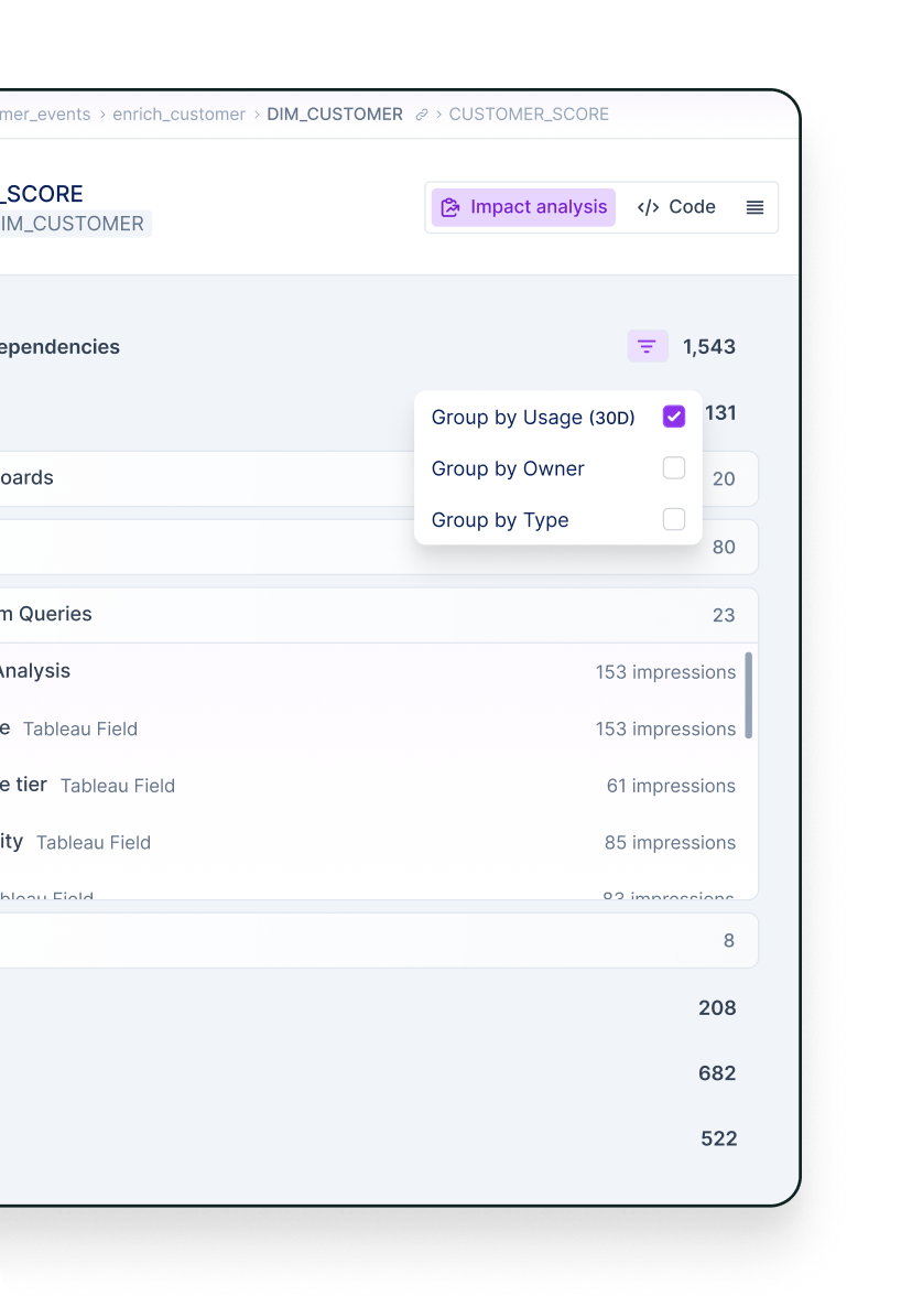 Euno attributes dashboard usage to upstream dimensions, measures and refresh jobs.