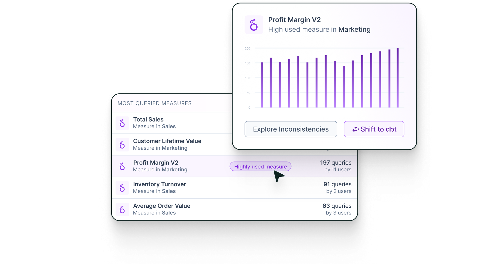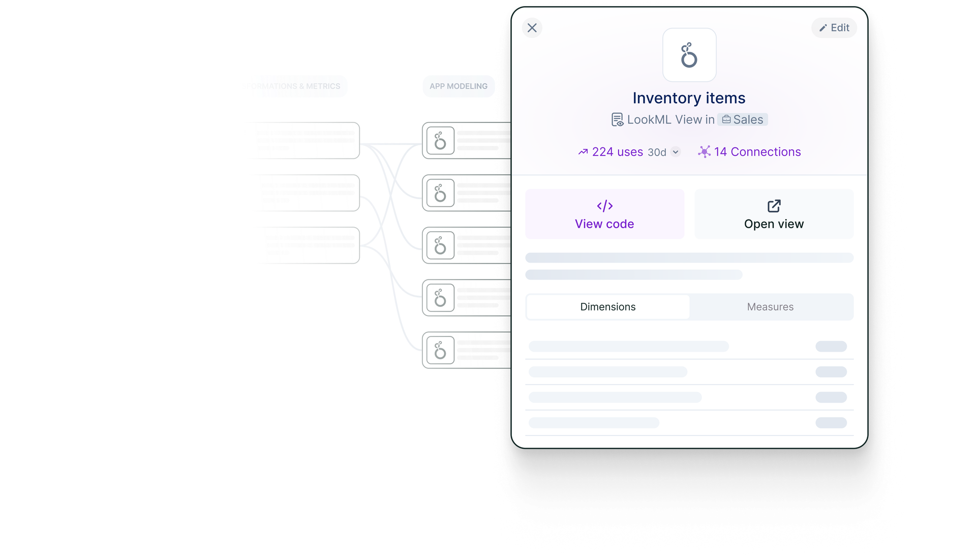 Understand what analysts created in Looker and how it’s used. Get a unified view from dbt™ all the way to Looker: LookML Views and Explores, Looker Looks, Tiles and Dashboards. See how they connect to dbt upstream, with end-to-end lineage and column level utilization.