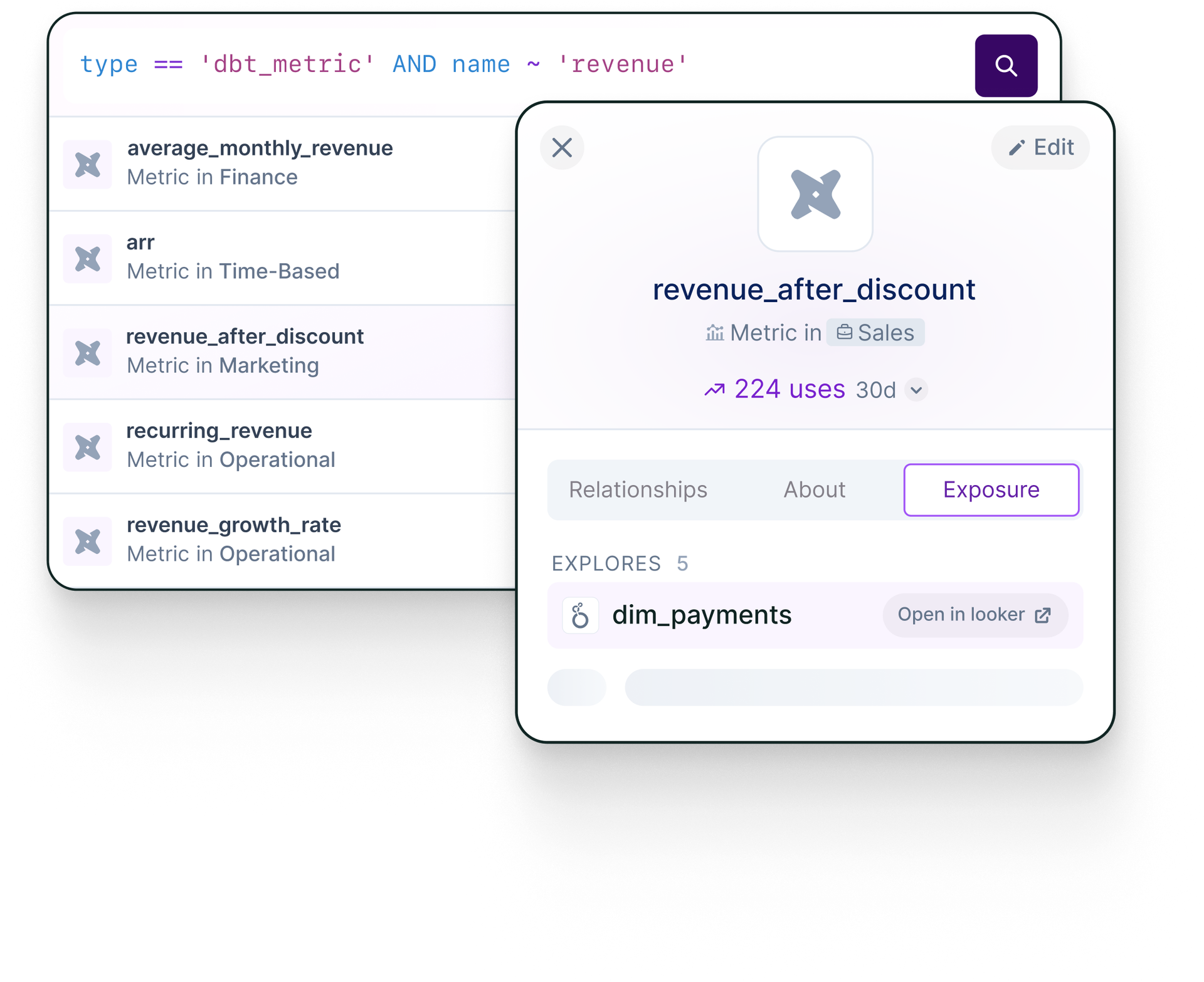 Turn your distributed metrics into a searchable catalog, so teams can find and reuse existing definitions instead of building from scratch.